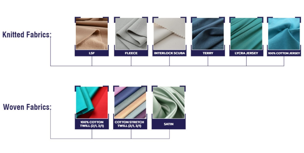 Knitted Fabrics: Fleece, Interlock, Scuba, Terry, Lycra Jersey, 100% Cotton Jersey